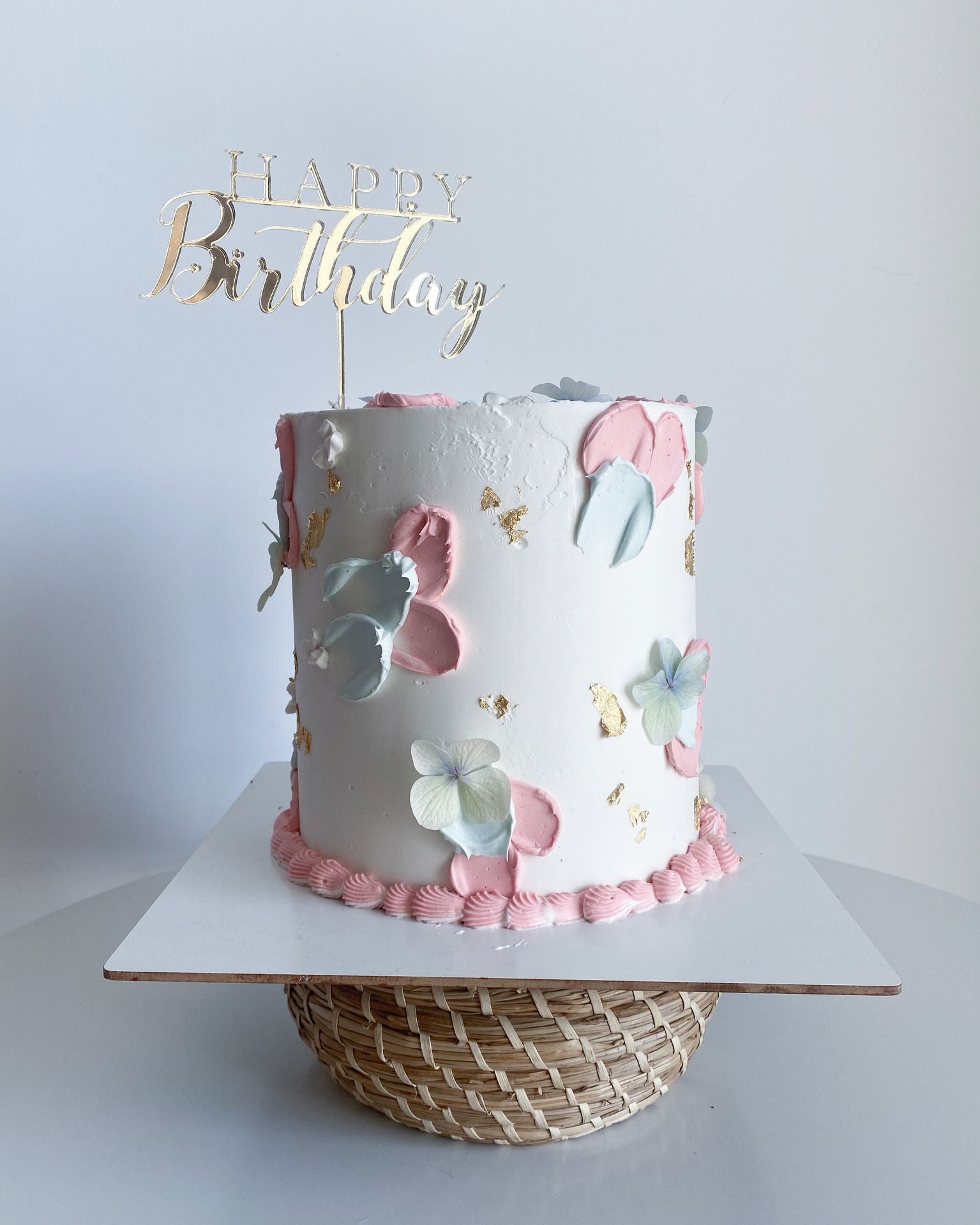 Topper de Bolo 'Happy Birthday ' em Acrílico Dourado